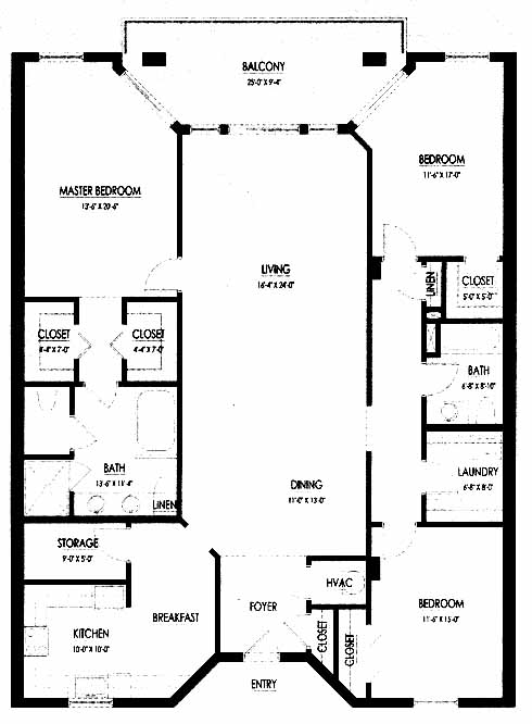 Kitchen with breakfast area to one side of the foyer entrance. The dining room overlooks the living room with balcony access where you can entertain guests comfortably. The master bedroom includes private balcony access, his and her walk-in closets and a master bath with double vanity, tub and separate shower. Two more bedrooms on the opposite side of the home share a bath.