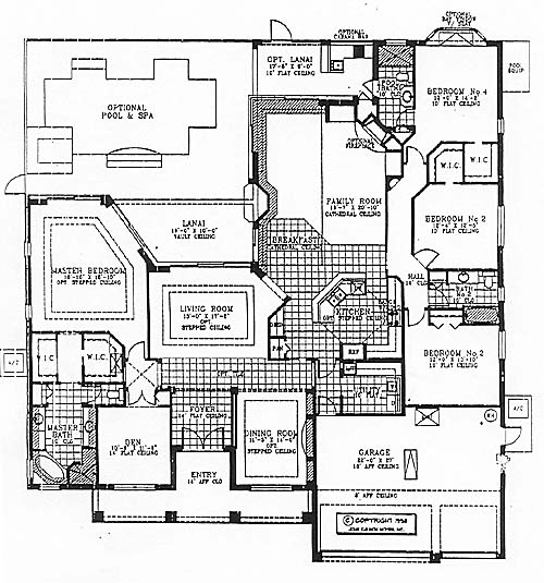 A split bedroom floor plan home, with a spacious master suite, and a private den. The family room and breakfast room have cathedral ceilings.