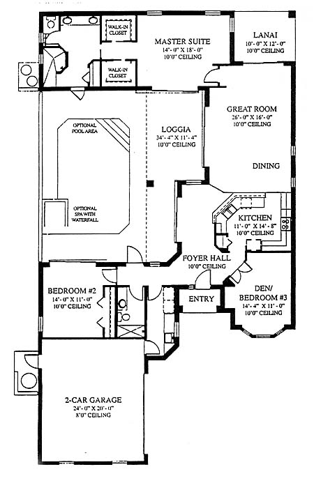 A single family estate home, built around a courtyard, with a 300 Sq. Ft. loggia. The loggia is accessible from the master suite, great room and foyer. The home features raised ceilings throughout.