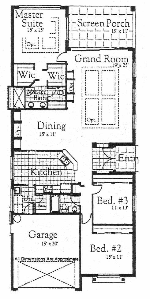 This villa features a spacious grand room that is great for entertaining guests and has an optional fireplace available and access to the screen porch. The kitchen has a walk-in pantry and opens into the dining room. The master suite includes his and her walk-in closets and a private bath with double vanity. Two more bedrooms share a bath.