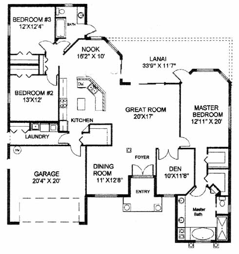 This home has a dining room and den on either side of the foyer entrance. The spacious great room includes access to the lanai in the back and is perfect for entertaining guests. The kitchen has a walk-in pantry and island workspace before opening into the nook. The master suite includes his and her walk-in closets and a private bath with double vanity and garden tub. Two more bedrooms share a bath. An optional bonus room is available. Price does not include a homesite.