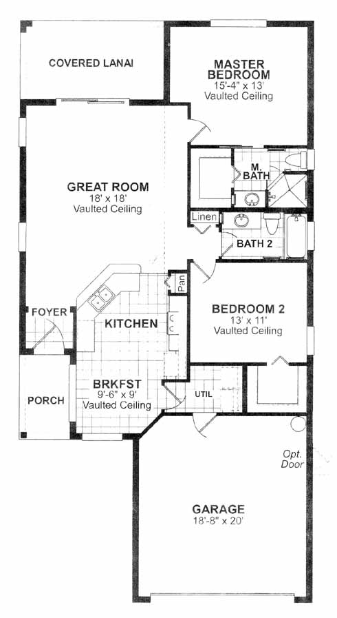 This patio home has a spacious great room at the foyer entrance that includes access to the covered lanai. The master suite in the back includes a walk-in closet and private bath with shower. The second bedroom also has a walk-in closet and is close to a second bath. The kitchen includes a countertop bar, a pantry and breakfast area. Vaulted ceilings throughout the home.