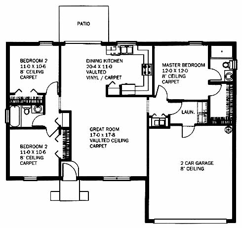 This home has a spacious great room with vaulted ceiling that is perfect for entertaining guests. The dining room in the back has access to the patio while leading to the kitchen with pantry. The master bedroom includes a large walk-in closet and private bath. Two bedrooms on the opposite side of the home share a bath between them. Price does not include a homesite.