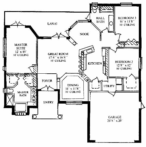 This home features a formal dining room to one side of the foyer entrance. The great room with lanai access is a nice area to relax on the weekend. The kitchen with walk-in pantry and ample counterspace overlooks the nook area. Highlights of the master suite include private access to the lanai, his and her walk-in closets and a master bath with soaking tub and separate shower. Two bedrooms on the opposite side of the home share a bath. Price does not include homesite.