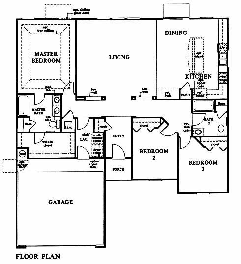 This home includes a large living room that is perfect for entertaining while leading to the dining room. The kitchen nearby has a pantry, and an optional desk and island workspace available. The master bedroom includes a large walk-in closet and master bath with tub and linen closet. Two more bedrooms on the opposite side of the home share a bath.