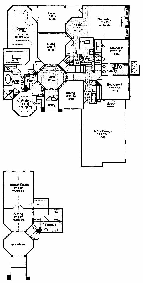 Beautiful foyer serves as an access point to the rest of the home. The study makes a nice home office while the formal dining room is great for dinner parties. The kitchen has a walk-in pantry and island workspace while overlooking the nook. The gathering room to the back includes built-ins on either side of the fireplace. The luxurious owner's suite includes private lanai access, a wardrobe closet and owner's bath with double vanity, soaking tub and separate shower. Two more bedrooms share a Jack-n-Jill bath. The second-floor bonus room is multi-functioning and includes a sitting area and bath closeby.