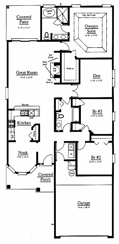 This home has a nook to one side of the foyer entrance that has a bay window and leads to the kitchen with pantry and bar-top. The great room in the back is a nice area for entertaining guests and includes access to the covered patio. The den nearby makes a nice home office. The owner's suite includes a walk-in closet and master bath with double vanity, garden tub and separate shower. Two more bedrooms share a bath.