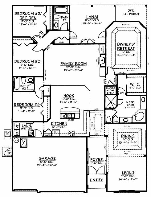 This home has formal living and dining rooms to one side of the foyer entrance. The kitchen nearby has a pantry and island workspace while overlooking the nook area. The family room with lanai access and optional fireplace is a nice area for relaxing on the weekend. The owner's retreat includes private lanai access, a walk-in closet and a master bath with dual vanities, soaking tub and separate shower. Three more bedrooms and two baths allow for maximum privacy.