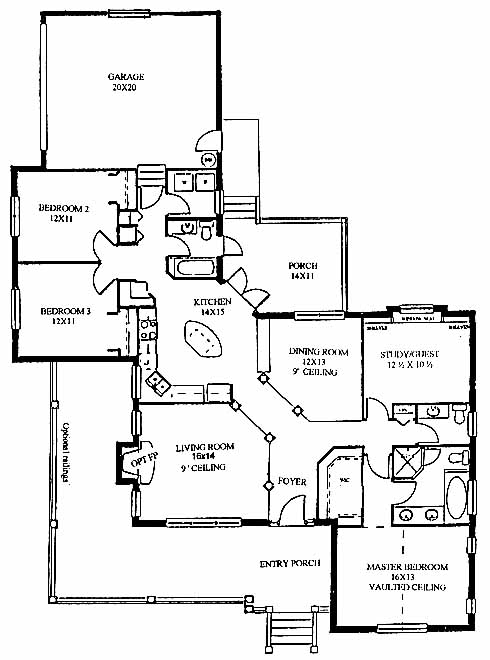 Beautiful living room to one side of the foyer entrance has ample space for entertaining guests and has an optional fireplace available. The kitchen includes an island workspace and porch access while overlooking the formal dining room. The nearby study makes a nice home office or library. The master bedroom in the front includes a walk-in closet and master bath with double vanity, tub and separate shower. Two more bedrooms share a bath and have close access to the laundry room.