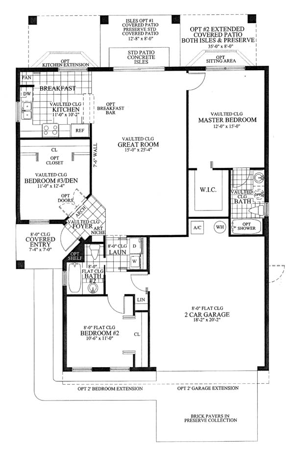 Three bedroom optional den, two bathrooms, great room, kitchen, breakfast area, laundry room, two car garage.