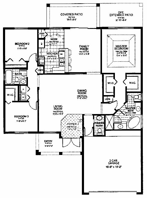 This home features a spacious master bedroom with his and her walk-in closets and a master bath with dual vanities, tub and separate shower. Two bedrooms on the opposite side of the home share a bath between them. Living and dining rooms welcome guests once inside. The family room in the back has access to the covered patio outside. The kitchen and nook overlook the family room.