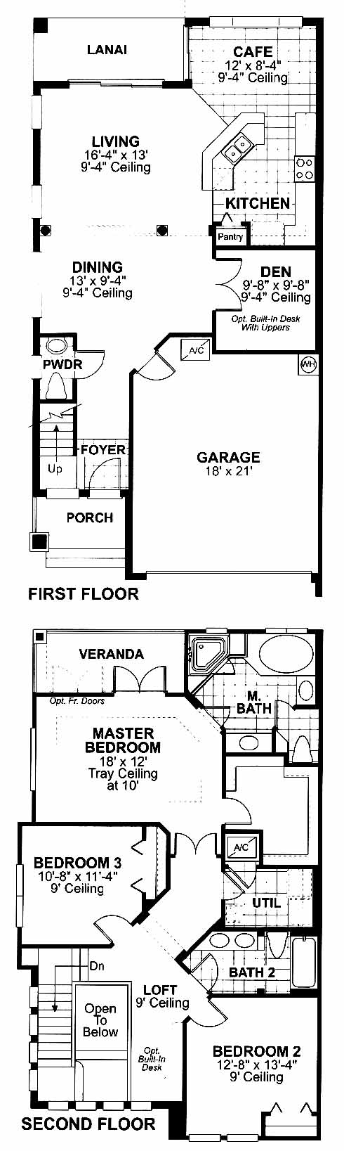This townhome has a dining room that overlooks the living room with lanai access where you can entertain guests. The den makes a nice home office. The cafe leads to the kitchen with pantry and ample counterspace for preparing meals. The second-floor master bedroom includes a walk-in closet, a private veranda and a master bath with dual vanities, tub and separate shower. Two more bedrooms share a bath with double vanity.