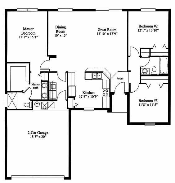 This beautiful home has a foyer that opens into a spacious great room. Two bedrooms and a bath to the right are also accessible from the foyer. The kitchen is located at the front of the home and overlooks the great room and dining room. The master suite includes a walk-in closet and private bath.
