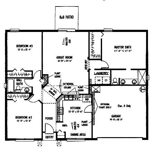 Spacious great room in the back includes a vaulted ceiling, plant ledge and patio access. At the front is the dining area and kitchen with pantry and ample counterspace for preparing meals. The master suite includes a walk-in closet, a private bath and close access to the laundry room. Two more bedrooms share a bath between them.