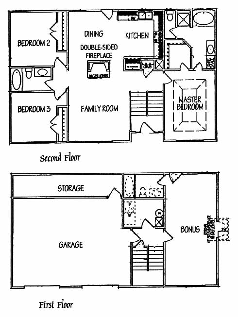 Distinctive split-foyer design with three bedrooms and two baths. Includes a private master suite with separate bath and large master closet. Double-sided fireplace in family room. First floor includes an optional fireplace, finished bonus room with third full bath.
