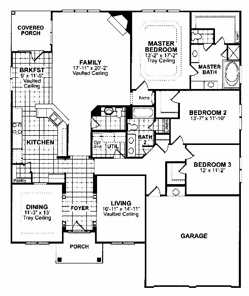 This home includes a spacious family room with vaulted ceiling and fireplace where you can entertain guests comfortably. Formal living and dining rooms are at either side of the foyer entrance, with a kitchen nearby that includes a walk-in pantry and plenty of counterspace. The breakfast room has access to the covered porch outside. The master bedroom in the back includes a tray ceiling, walk-in closet and master bath with dual vanities, tub and separate shower. Two more bedrooms share a bath.