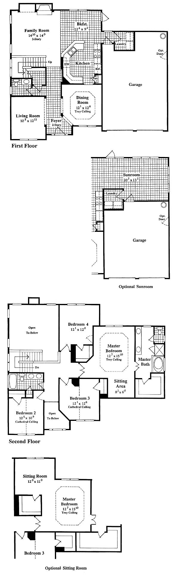 Luxurious home with two story family room, expansive master suite, tiled foyer and kitchen and optional sunroom.
