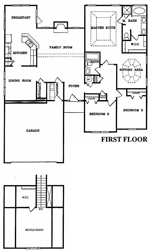Brick front, open ranch. Vaulted family room. Owner's suite that features a large trey ceiling, sitting room. Sitting room can be converted to a fourth bedroom at no extra charge. nine foot ceilings. Large bonus room upstairs.