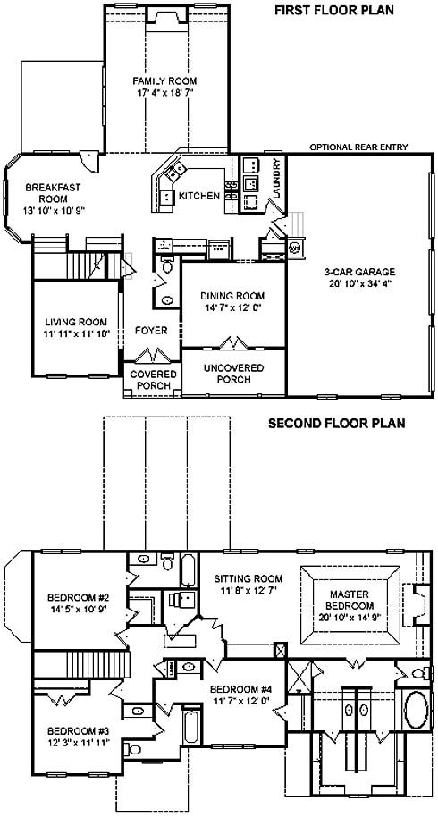 The family room and kitchen has been enlarged as well as the laundry room. The garage now allows for a three-car side entry. Upstairs, the master suite has been totally redesigned with its sitting area now offering an optional fireplace with built-ins. The master bath gives the impression of