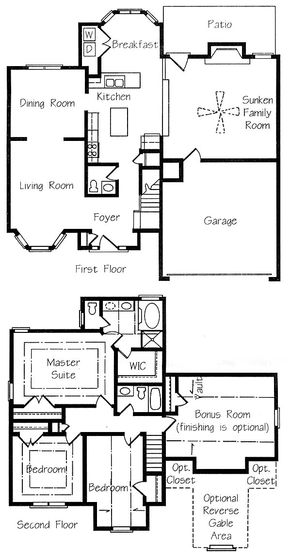 Two story family home with sunken family room with fireplace, formal living and dining rooms, large master suite and vaulted bonus room.