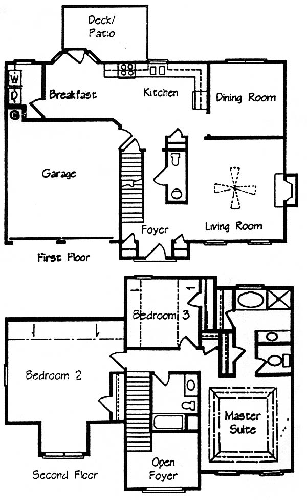 Two story home featuring a spacious floor plan, large bedrooms, deck and basement.