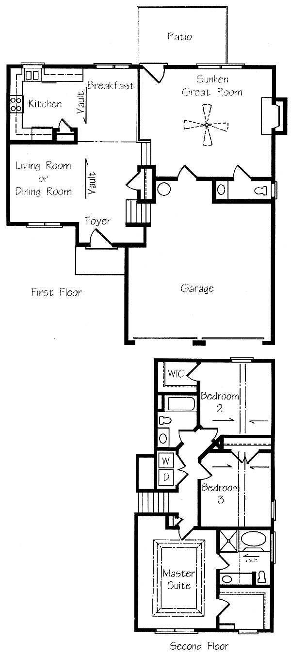 Innovative two story home with sunken great room, vaulted living room and large master suite.