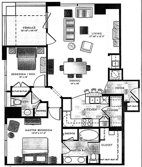 1094 Sq. Ft., plus 114 Sq. Ft. terrace area.
