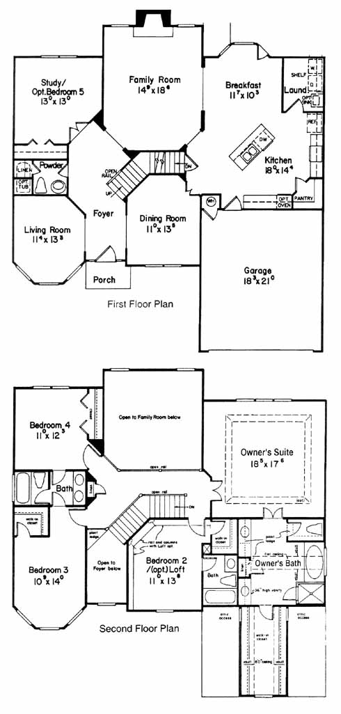 This home includes formal living and dining rooms on either side of the foyer entrance. The family room in the back includes a fireplace, making it a popular gathering spot during chilly nights. The breakfast area has a bay window and access to the patio. A walk-in pantry and island workspace with double sink highlights the kitchen. A bedroom rounds out the first floor. Upstairs you will find an owner's suite that includes an oversized walk-in closet and owner's bath with dual vanities, tub and separate shower. Two bedrooms share a Jack-n-Jill bath while another bedroom has a private bath. Views of the family room and foyer can be seen below.