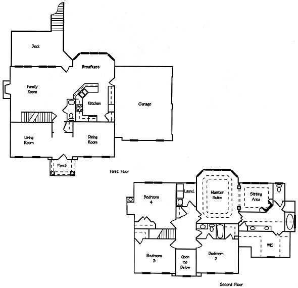 Master with huge sitting room with fireplace, separate living room and dining room. Family room with view of kitchen.