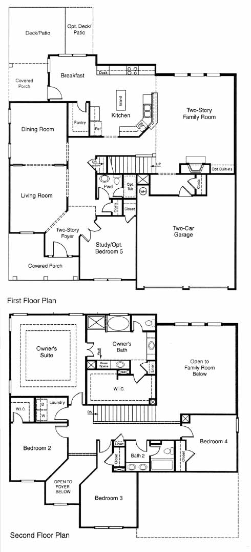 This home includes a study to one side of the foyer entrance that makes a nice office. Formal living and dining rooms can be found on the other side of the foyer. Entertain guests comfortably in the two-story family room that includes a fireplace and optional built-ins. The kitchen with island workspace and walk-in pantry leads to the breakfast area with patio access. The second floor has four more bedrooms, including an owner's suite that has an oversized walk-in closet and master bath with dual vanities, soaking tub and separate shower.