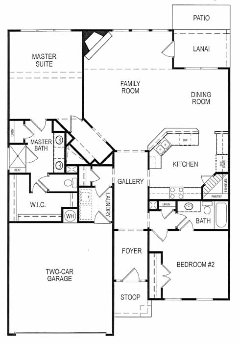 This home has a foyer that leads to a spacious family room with fireplace where you can entertain guests comfortably. Enjoy views of the lanai from the dining room that leads to the kitchen with walk-in pantry and bartop. The master suite includes a walk-in closet and master bath with double vanity and shower with seat. A second bedroom has private access to a bath.