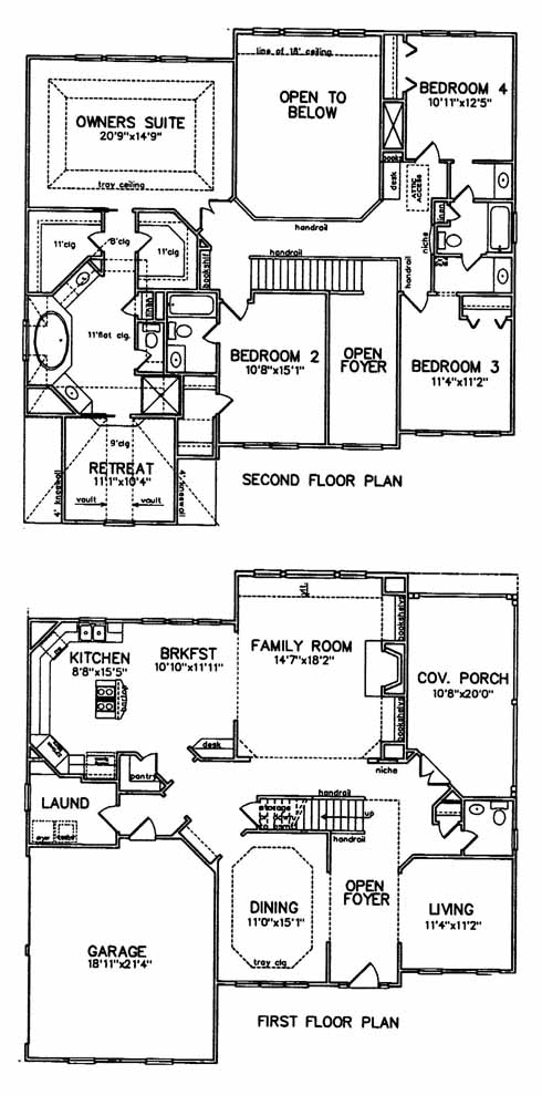 This two-story home includes formal living and dining rooms on either side of the two-story foyer entrance. Access the covered porch before leading to the family room with fireplace and bookshelves. The breakfast room with desk area leads to the kitchen with pantry and island range. The second-floor owner's suite includes a retreat area, his and her walk-in closets and a master bath with dual vanities and a soaking tub. Three more bedrooms and two baths allow plenty of privacy and space for everyone in the family.