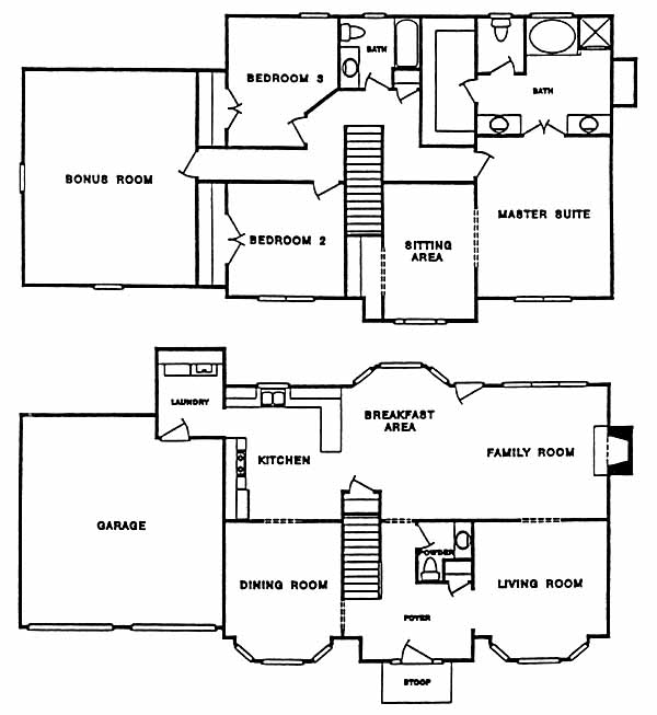 Fantastic three bedroom plan with a dramatic bonus room. Living, dining, family room combination with large sitting room in master bedroom.