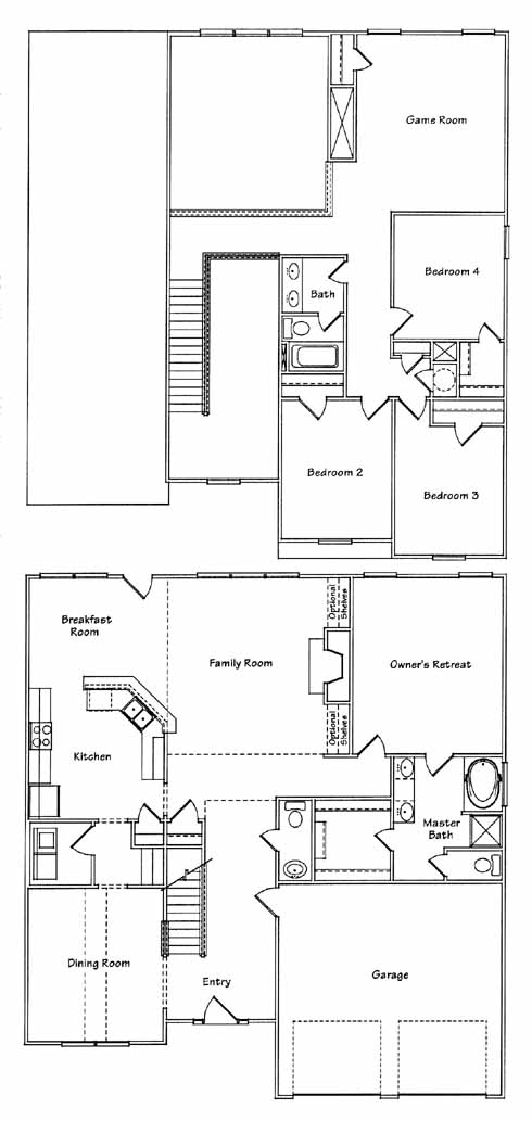 Master on main, four bedroom, game/media room on the second floor.