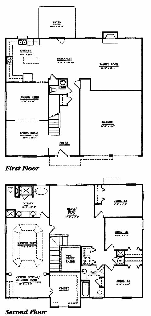 Dramatic front elevation on a great lot with trees. Media room on the second floor, separate vanities in the master bedroom. Master bedroom has a large sitting room.