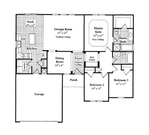 The Newport A is a ranch home that offers a vaulted foyer with arches, opening to the formal dining room and the large vaulted Georgia room. The spacious kitchen features an island and breakfast nook. Trey ceiling in the master suite.