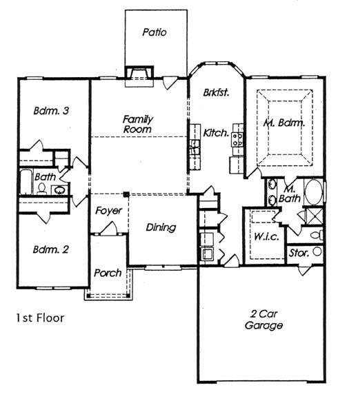 This home has a dining room to one side of the foyer entrance that overlooks the family room with fireplace and patio access. The breakfast area has a nice bay window before leading to the kitchen with pantry and ample counterspace for preparing meals. The master bedroom includes a walk-in closet and master bath with double vanity, tub and separate shower. Two more bedrooms on the opposite side of the home share a bath between them.