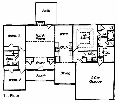 This ranch-style home has a dining room to one side of the foyer entrance. The family room at the back includes a fireplace and access to the patio. The kitchen includes ample counterspace for preparing meals and opens into the breakfast area. The master bedroom with tray ceiling also includes a walk-in closet and master bath with double vanity. Two bedrooms on the opposite side of the home share a bath between them.