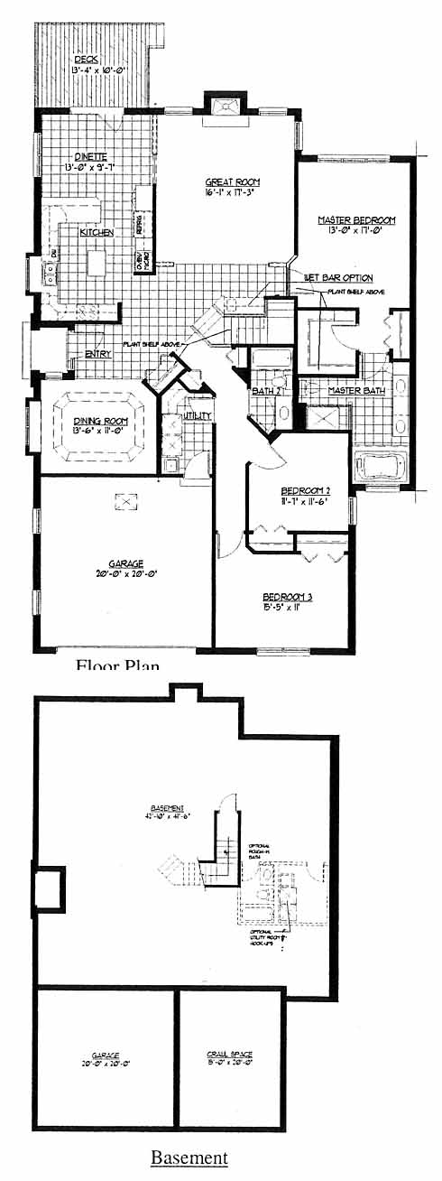 Features: Great Room, Dining Room with Tray Ceiling, 3 bedrooms with Large Master Suite & Whirlpool Tub, 2 Full Baths, Gourmet Kitchen, Optional Double Master Suite, Basements & 2-car garage. End Unit.