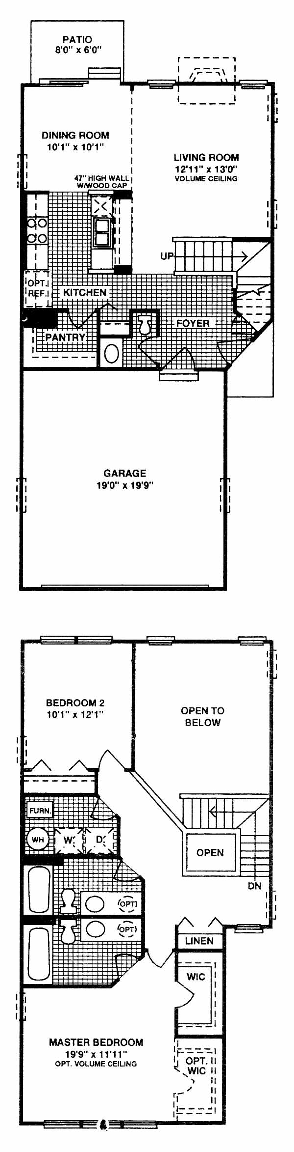 A two story town home with two bedrooms and two and a half baths including a private master bath. The second floor hallway overlooks the living room. A bonus room or third bedroom is available.