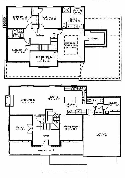 This country home features a large front porch with cultured stone and cedar front elevation. The Hawthorne features 9' ceilings on the first floor, 4 bedrooms all with walk-in closets, 2.5 baths, first floor library and private study off of the master bedroom. Private study features a cathedral ceiling and double windows with half-round window above. First floor laundry.