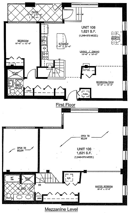 This unit has a spacious open floor plan that provides a master bedroom on the mezzanine level that overlooks the general living area. This type of plan is also called a soft loft, which gives you the openness of a loft with the practicality of divided private areas. It also has a nice sized yard and patio.