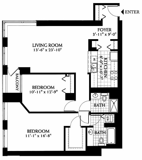 Spacious, hardwood floors, granite counter tops, curved interiors, floor to ceiling windows, vented washer/dryers, loft-like open kitchens, private balconies.