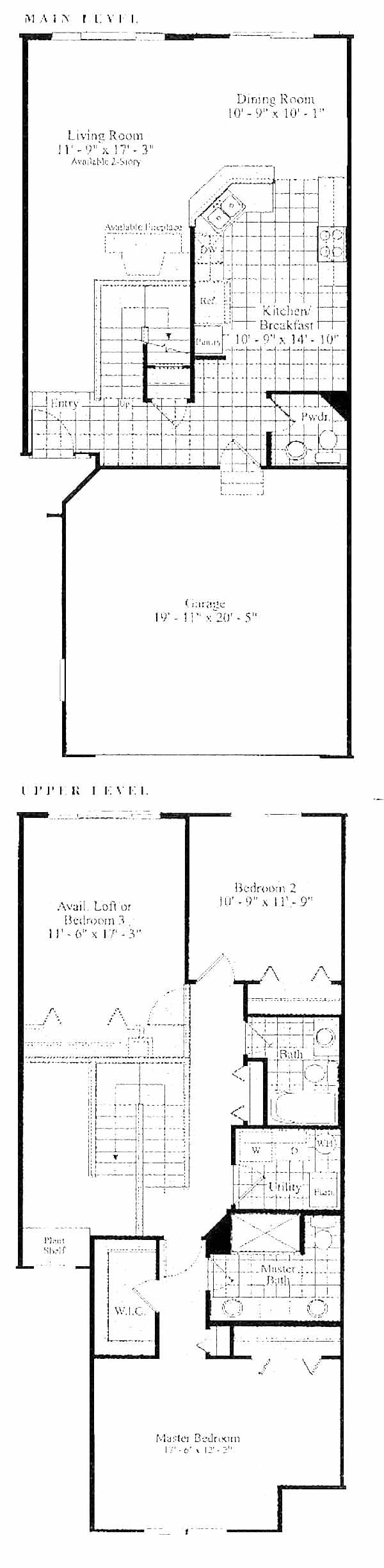 Two-story living room, two bedrooms, two and one half baths, second floor laundry room, kitchen/breakfast with breakfast bar, living room, dining room, patio, two-car attached garage. Optional loft or third bedroom available. Master suite includes a large walk-in closet.