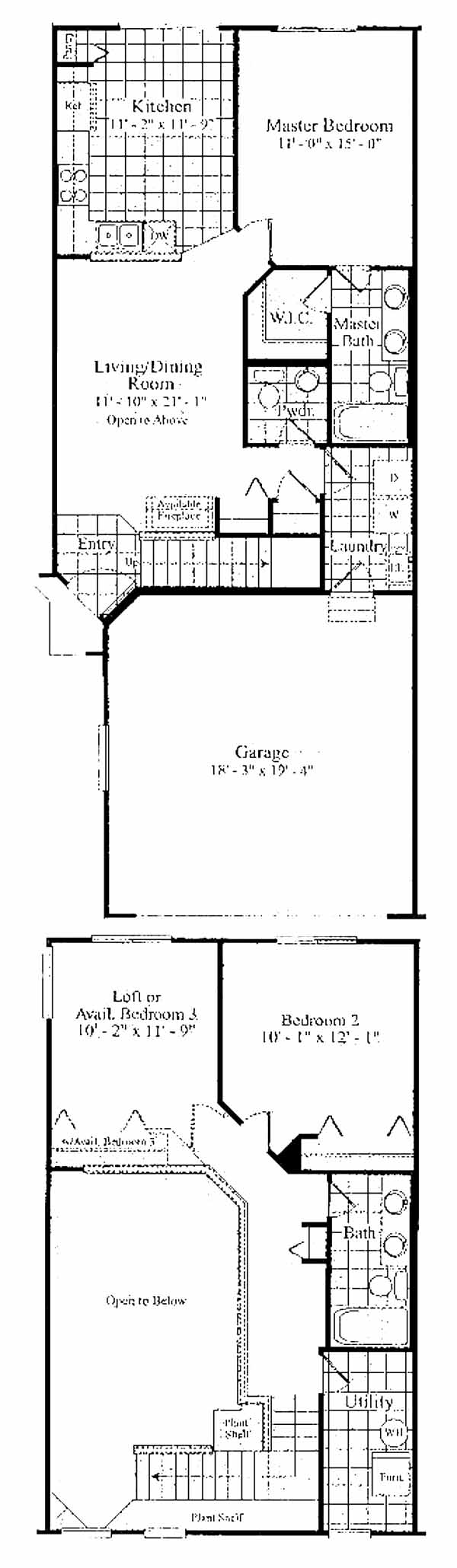 Two-story town home with two bedrooms plus loft, master suite on the main level and living room. Optional third bedroom in lieu of loft available. Master suite includes a large walk-in closet.