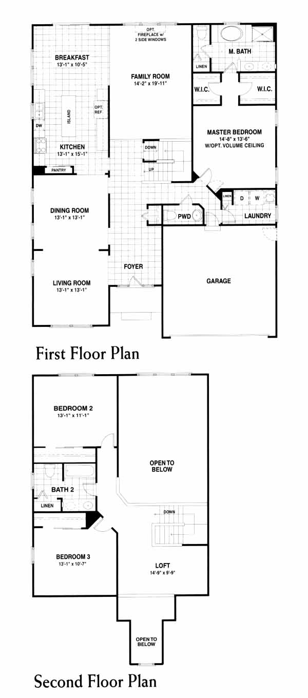 A three bedroom home with 2-1/2 baths featuring the master bedroom suite on the first floor with a deluxe bath with soaker tub and separate shower. Two bedrooms, loft and another full bath are upstairs. This home also features a volume foyer with formal living room and formal dining room, a gourmet kitchen with a huge preparation island, separate breakfast area, family room with volume ceiling, attached two-car garage with concrete driveway and basement.