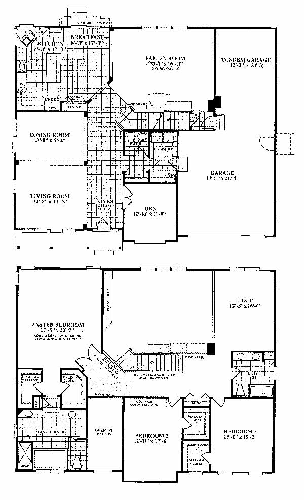Elegant two-story home with formal living and dining rooms, great den, volume ceilings in the family room, two car tandem garage or an optional room.