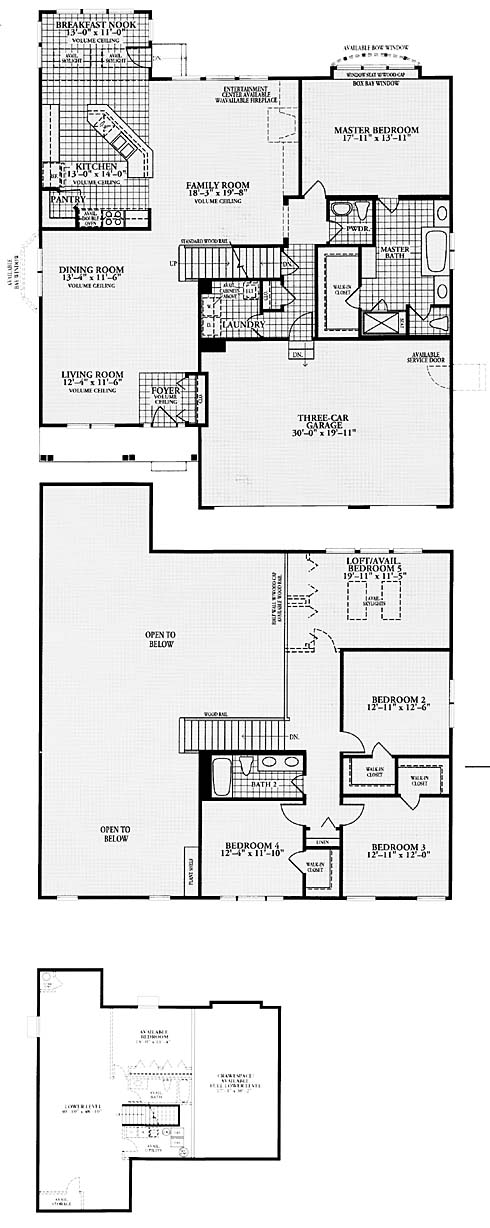 First floor master suite in this two-story home with loft, living/dining room, family room. Vaulted ceilings in most rooms, basement.