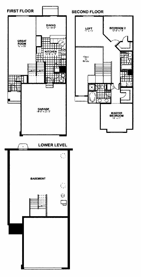 1512 square Feet: Two-story home; 2 Bedrooms with walk-in closets; Loft; Available Third Bedroom; 2-1/2 Baths; Second Floor Laundry; 2-story Foyer; 2-story Great Room; 9-Foot First Floor ceilings; Sliding Glass Patio Door; Basement; 2-car Garage.