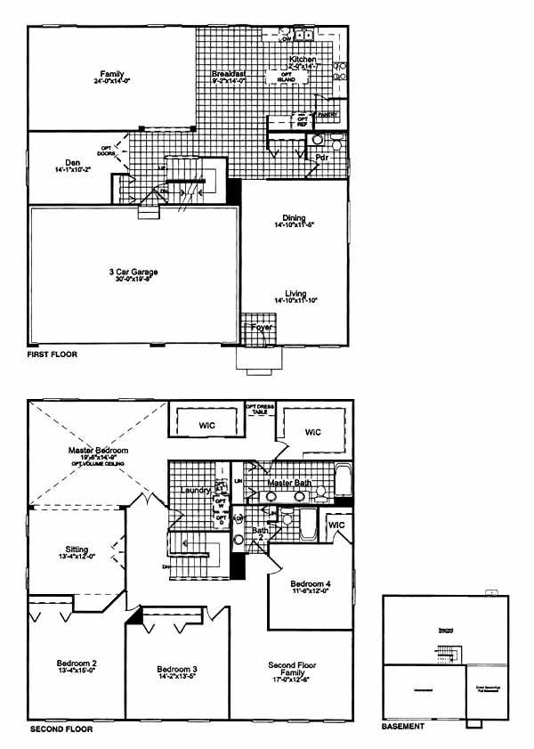 Two-story home with four bedrooms, two-and-one-half baths, living room, dining room, first and second floor family rooms, den, basement, and an attached three-car garage.